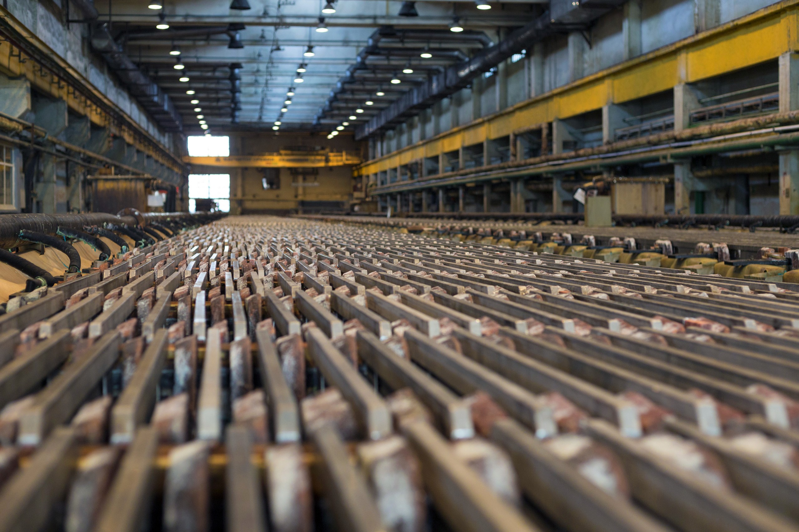 Процесс электролиза — это практически алхимия 21 века. В цехе, сколько хватает глаз, простираются ванны, заполненные электролитом. Аноды в них растворяются, очищаются от примесей, и на выходе металлурги получают тонкие пластины чистой меди. Их называют катодами. Содержание металла в них уже 99.99%. Но и это еще не конечный продукт.