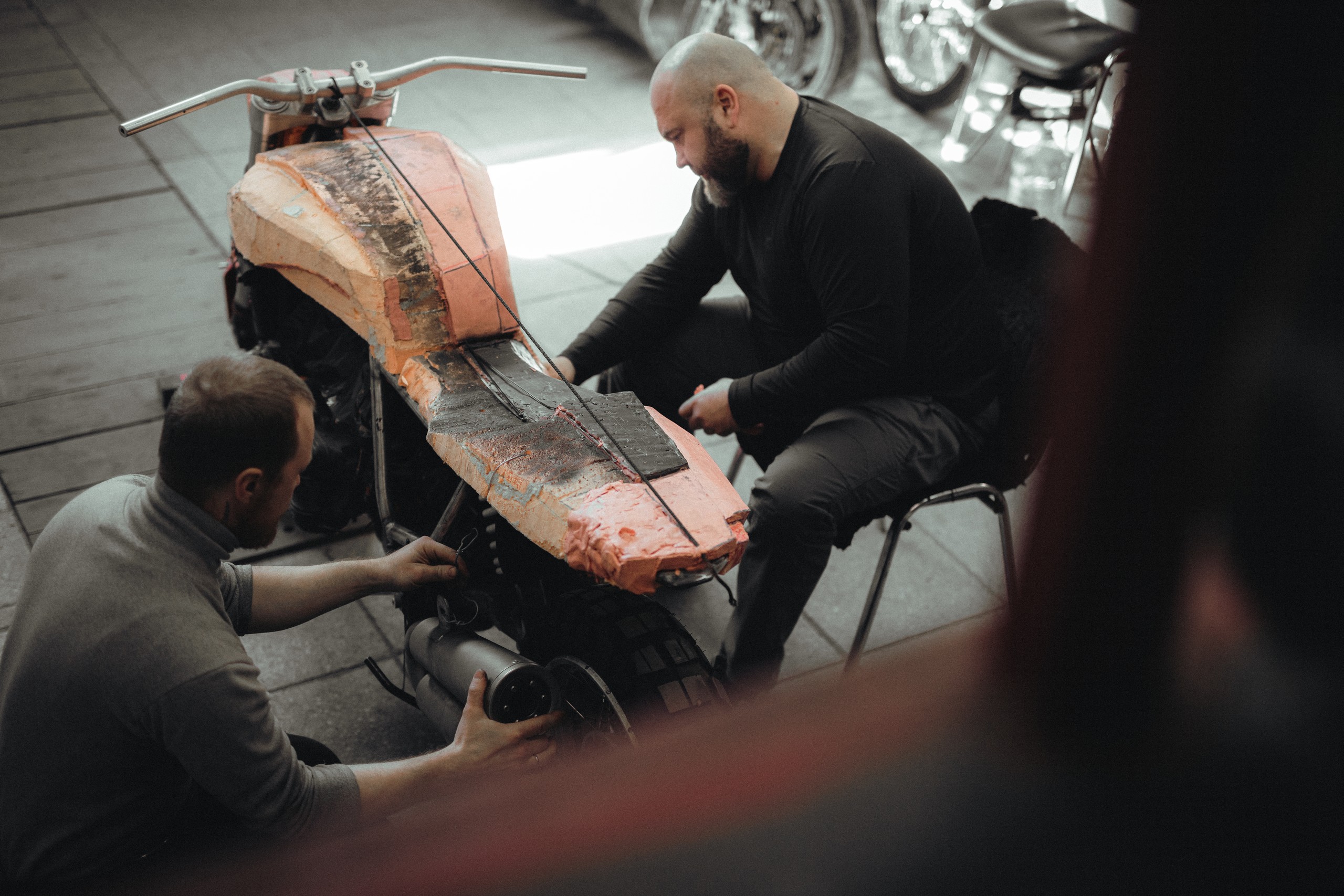 У Ромы довольно узнаваемый стиль и, как правило, это работа без чертежей. В основе всех деталей металл и ничего лишнего. Но когда работа командная, всегда есть место для экспериментов.